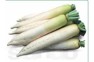 корнеплод чисто белый, 45-60 см длиной, зауженный к концу.